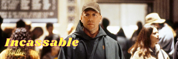 Sâil fallait associer un rĂ©alisateur Ă la ville de Philadelphie, câest bien souvent le nom de Manoj Night Shyamalan qui ressort en premier. NĂ© en Inde, mais ayant passĂ© une partie de son enfance Ă Philly, il a pour habitude de tourner la plupart de ses films lĂ -bas. Dans Incassable, la gare bouillonne. Les gens sây pressent, sans un regard en arriĂšre ou un mot dâexcuse. On se frĂŽle, on se coupe la route pour arriver Ă prendre son train Ă temps. Le temps dâune scĂšne-clĂ©, David Dunn, interprĂ©tĂ© par Bruce Willis, trace calmement son chemin au milieu de la foule, vĂȘtu de son habituel impermĂ©able et de sa casquette vissĂ©e sur le crĂąne. Imperturbable. La femme en rouge le bouscule. Le premier flash arrive comme un Ă©lectrochoc, le souvenir apparaĂźt clairement dans lâesprit du personnage.